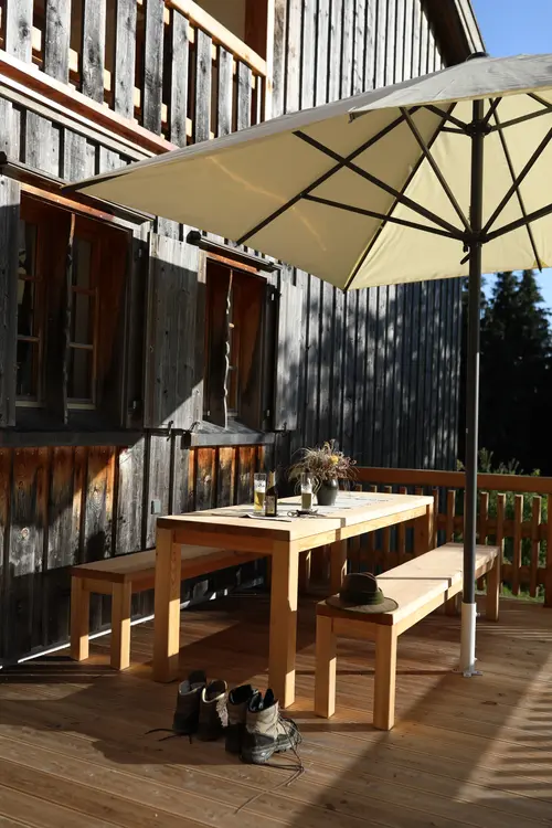 - Relax in our spa area: there’s a sauna made of local hand-planed spruce wood, a relaxation room with cosy day beds, and a large splash shower with ice-cold mountain water